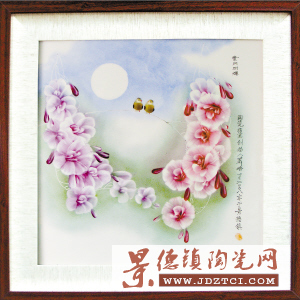 作者的手指、手掌紋路與瓷瓶、瓷板的表面肌里在相互穿插中,使所要表現(xiàn)的花鳥在形態(tài)變化和色彩對比中獲得勃勃生機。