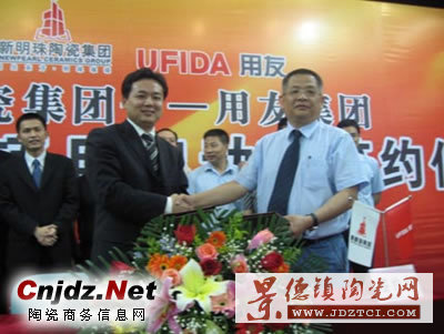 用友軟件副總裁朱鐵生與新明珠陶瓷集團(tuán)副總裁李列林?jǐn)y手
