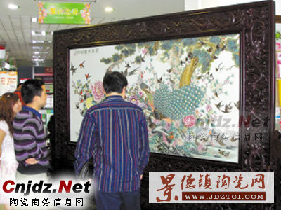 近日,很多逛重慶市解放碑新華書(shū)店的市民,都被其五樓的巨幅陶瓷屏風(fēng)所吸引。據(jù)該陶瓷屏風(fēng)銷(xiāo)售商——景德名瓷店負(fù)責(zé)人肖建平總經(jīng)理稱(chēng),這個(gè)迄今為止世界上最大的陶瓷屏風(fēng),寬3.3米,高2.4米,比目前陳列在人民大會(huì)堂的報(bào)春圖瓷板屏風(fēng)還要寬出20厘米。