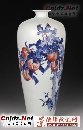 陸如 《萬壽圖》青花釉下彩瓷瓶