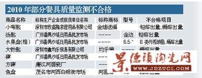在抽檢的21種不合格陶瓷商品中,有14款是沒有商標(biāo)的;而且能標(biāo)出生產(chǎn)企業(yè)的也只有兩款,其余都是在批發(fā)市場、陶瓷商店購買的,其中番禺沙溪日用品批發(fā)市場及其陶瓷批發(fā)店的有11款,有一款名稱為“鮑魚盤”的不合格產(chǎn)品只標(biāo)出銷售地為“潮州”。