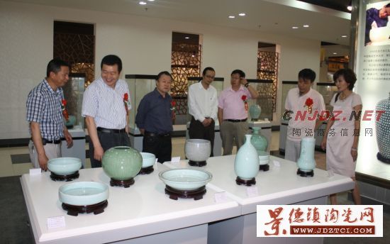 6月10日,由江蘇省宜興陶瓷行業(yè)協(xié)會(huì)和浙江省龍泉青瓷行業(yè)協(xié)會(huì)共同主辦的“2011中國(guó)青瓷藝術(shù)展”在江蘇宜興中國(guó)陶都陶瓷藝術(shù)國(guó)際博覽中心隆重開(kāi)幕。浙江省龍泉市委趙建林書(shū)記、江蘇省宜興市政協(xié)邵亞群主席、市人大楊亞君副主任、市政府洪雅副市長(zhǎng)、浙江省龍泉青瓷行業(yè)協(xié)會(huì)會(huì)長(zhǎng)、中國(guó)陶瓷藝術(shù)大師徐定昌、江蘇省宜興市陶瓷行業(yè)協(xié)會(huì)史俊棠會(huì)長(zhǎng)、山東省泰山瓷業(yè)盧德國(guó)董事長(zhǎng)和宜興中國(guó)陶瓷城石國(guó)松董事長(zhǎng)等政府領(lǐng)導(dǎo)、藝術(shù)家、特邀嘉賓、企業(yè)界和收藏界人士近兩百人出席了開(kāi)幕儀式。