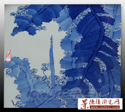 青花芭蕉瓷板