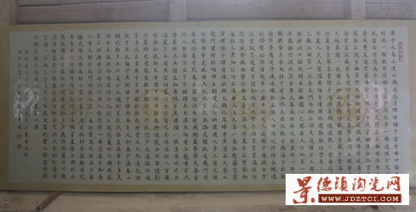2010年6月18日上午,記者在景德鎮(zhèn)老鴨灘最大的瓷板燒制廠看到了這件巨型書法作品《洪巖導(dǎo)游歌》,并為大家揭開它的神秘面紗。