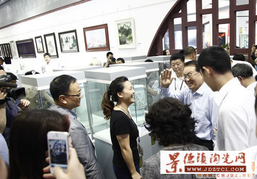 景德鎮(zhèn)陶瓷網(wǎng)訊 5月19日,中央政治局原常委李長春,中央政治局委員、廣東省委書記胡春華來到第九屆深圳文博會(huì)2號(hào)展館,并專門巡視了由市文聯(lián)主辦的“千年瓷韻•陶醉鵬城——景德鎮(zhèn)當(dāng)代藝術(shù)陶瓷展”展廳。