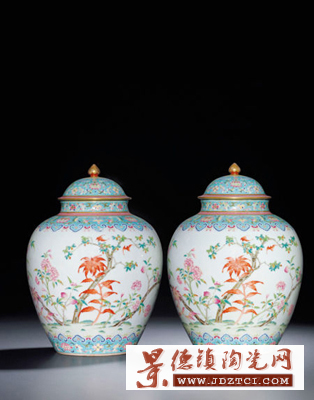 清道光 粉彩麗景雁來紅蓋罐一對 678萬的成交