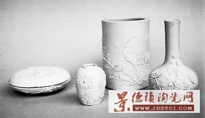 多年來,我偏重于素胎雕瓷的收藏。所謂素胎,即是不上釉的也有稱之為“生瓷”;初見誤以為是毛坯,實則是有意而為之。因不上釉,胎料極為講究,手感極其柔滑,胎白如雪叩之響聲脆亮,胎面上的剔雕圓潤逼真。(如圖)這幾件菊花圖案文房用品,是幾年來覓購于不同地方,結(jié)集成套。不少人見之誤以為是瓷工漏了上釉,也有的誤認為新仿的而不敢問津,F(xiàn)在市場上確實有不少新仿的這類東西,但雕剔粗糙,胎泥混濁,圖案呆板,細察即可明辨,尤其是仿陳國治、王炳榮、李裕成三大名家的,更要格外小心。