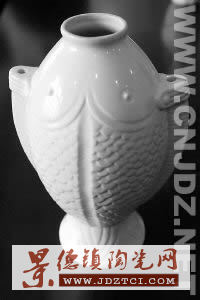 這件瓷瓶瓶身為兩條魚(yú),各自有目有甲,但這兩條魚(yú)又是共有一張嘴和一條尾鰭。背鰭被瓷器工匠巧妙地加工為環(huán)孔。由于是并聯(lián)結(jié)構(gòu),從整體上看,兩條肥碩的魚(yú)組成的造型,毫不沖突,體現(xiàn)出珠璧聯(lián)合。張錦旗攝