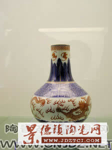 清代青花礬紅雙龍戲珠紋瓶(景德鎮(zhèn)官窯)