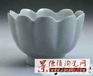 汝窯蓮花式溫碗 以蓮花或蓮瓣作為器物之紋飾及造型,隨佛教之傳入而盛行,爾后更取其出泥不染之習性,寓意廉潔,廣為各類器所采用。本器狀似未盛開蓮花,線條溫柔婉約,高雅清麗。原器應與一執(zhí)壺配套,為一溫酒用器,晚唐至宋所常見。 汝窯曾為宮中用器,因采覆燒的方式,故口有缺陷,因而有「宮中命汝州燒造青瓷」之舉,汝窯之入選,支燒滿釉應是原因之一。支燒另一用處為防止器底塌陷,汝窯所用支釘細小,所留釘痕狀似芝麻,器底五支釘痕即是,也就是俗稱的「芝麻釘」。釉面細碎紋路,更有「蟹爪痕」之美名。 蓮花溫碗,以其典雅造型,溫柔不透明釉色,在傳世不多之汝窯器中,更顯珍貴。