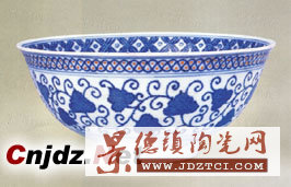 碗敞口,弧壁,圈足。足內(nèi)有青花雙圈“彩秀堂制”四字楷書堂名款。里外均以青花金彩為飾。里心繪一周環(huán)形蓮瓣,內(nèi)繪荷塘蓮花,內(nèi)壁金彩繪纏枝葉紋,內(nèi)口沿繪錦紋,外口沿繪水波紋,外壁繪纏枝苜;ā4送朐煨、紋飾及金彩描繪均仿永樂青花式樣,圖案裝飾精美。青花加金,給人以高貴典雅之感。