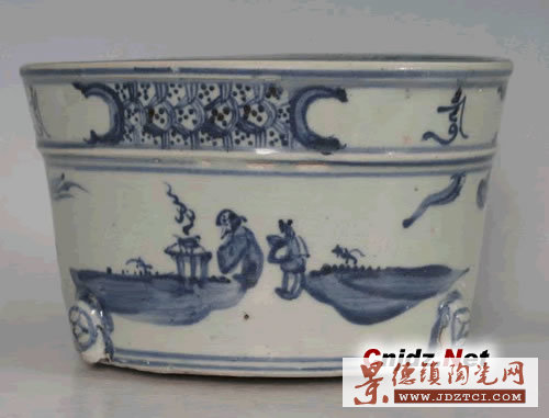 名 稱: 明正德 景德鎮(zhèn)窯青花山水人物紋三足爐