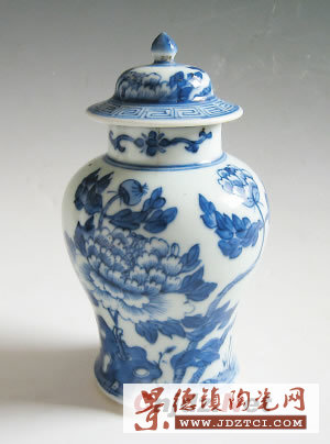 這件青花罐高度僅有20多厘米,但造型挺拔俊美,罐體腹部描繪了兩支盛開的牡丹花,這種瓷罐的蓋子形似古代將軍的頭盔,因此文博界形象地將其稱為“將軍罐”。