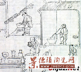 瓷器專圖,以清朝景德鎮(zhèn)瓷器的生產(chǎn)過程為畫題。