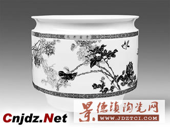 優(yōu)秀的陶瓷藝術(shù)品,造型、材質(zhì)固然重要,裝飾也很關(guān)鍵。舒惠學(xué)運(yùn)用精湛的工藝,依托造型展現(xiàn)裝飾內(nèi)涵。他在裝飾中充分注意陶瓷美術(shù)與書(shū)畫(huà)藝術(shù)的本質(zhì)區(qū)別。以充分展現(xiàn)作品的造型美、材質(zhì)美、工藝美為最高原則。陶瓷器形是一個(gè)三維體,特定的載體空間、材質(zhì)空間既是一個(gè)有利條件,又是一個(gè)制約因素。他一改傳統(tǒng)的裝飾模式,吸收了中國(guó)繪畫(huà)計(jì)白當(dāng)黑的技法,將四季花鳥(niǎo)無(wú)接縫地環(huán)繞,畫(huà)面連續(xù)起伏,韻律有致,無(wú)論從哪一個(gè)角度觀看,都顯得構(gòu)圖優(yōu)美,色彩華麗,均衡和諧。
