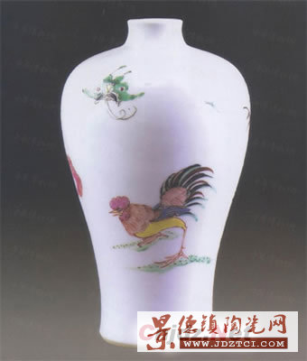 清雍正景德鎮(zhèn)窯粉彩雙雞紋圖梅瓶
