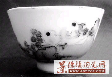 另外值得一提的是酒盅小巧,畫面有限,作者有意將側(cè)身的嬰孩沿底足而畫,底足成了一座石凳,小孩仿佛正好坐于石凳之上,真是構(gòu)思巧妙至極,非常人所及也。