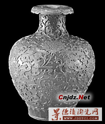 “暫得樓”藏品以陶瓷器最成體系,也最負盛名,在各代瓷器中,胡惠春最鐘愛的是清代康熙、雍正和乾隆三朝的單色釉。此次首都博物館《暫得樓藏清代官窯單色釉瓷器》專場,就是把他珍藏于美國紐約的清代康、雍、乾三朝單色釉瓷器和已捐贈給上海博物館的同時期單色釉瓷器匯聚在一起,舉辦的一個專題展覽,品種包括豇豆紅釉、孔雀綠釉、胭脂紅釉以及仿汝釉、官釉、青釉等。這些瓷器在康、雍、乾單色釉瓷器中是很具有代表性的,無論是仿宋五大名窯還是各式新創(chuàng)釉色產(chǎn)品,都使人感到精雅無比,體現(xiàn)了當時的燒造水平。如,展覽中展出的一件“青釉刻花纏枝蓮紋如意瓶”(見左圖)。青釉在清代官窯單色釉器中是一個重要的品種,釉色的深淺可分為粉青、豆青和冬青。豆青最深,冬青次之,粉青更次之。這件器物青中帶灰,極為雅致。通體滿刻蓮花,華麗而不浮艷。頸部兩側(cè)飾如意形耳,頭如靈芝,上飾蝙蝠,寓意吉祥。底刻“大清乾隆年制”篆書方章款,是乾隆官窯極精之品。