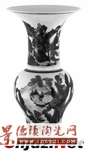 此次由中國(guó)文物學(xué)會(huì)全程監(jiān)督制作的高仿品青花山水人物圖鳳尾尊,經(jīng)眾多專家研究多年,終于再現(xiàn)了歷史的原貌。此尊貴在署干支紀(jì)年款,“乙未”為康熙五十四年(公元1715年)。其釉面及青花色澤為康熙晚期青花瓷的典型。