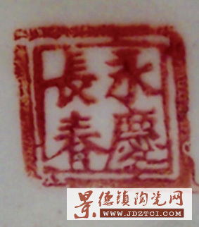 圖示光緒粉彩花卉瓶,高42厘米、口徑18厘米、足徑14.2厘米。造型規(guī)整、胎質(zhì)欠堅,釉色潤白泛青。撇口束頸溜肩,側(cè)飾獸首銜環(huán)耳,圓鼓腹近底漸收。圈足內(nèi)施白釉,呈現(xiàn)細(xì)小汗毛孔,散見針孔狀縮釉棕眼。署四字楷書“永慶長春”紅彩印章款!吨袊糯陶瓷鑒賞辭典》(余繼明、楊寅宗主編,新華出版社1992年1月出版)注釋:系清末光緒吉語款。