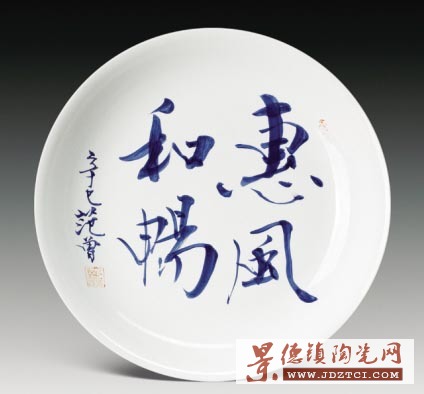 范曾 書"惠風和暢"青花盤 成交價:8.96萬元 北京榮寶2008秋拍品