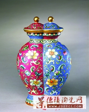 | 清 乾隆款琺瑯彩纏枝蓮紋雙連瓶 |