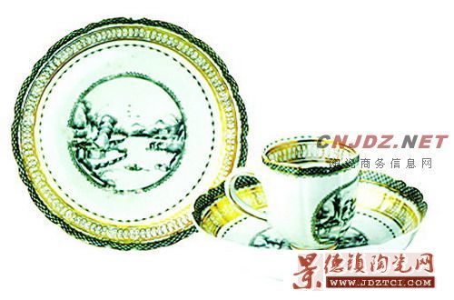 清代瓷器為適應(yīng)歐美市場的需要又誕生了廣彩?滴跄觊g解除海禁后,來華外國商船逐漸增多,當時清政府規(guī)定外國商船只能?繌V州碼頭,于是大批外商紛紛在廣州訂貨或來樣加工,為了適應(yīng)外銷市場需要,江西景德鎮(zhèn)部分釉上彩繪瓷器移至廣州加工生產(chǎn)。景德鎮(zhèn)釉上彩瓷在這里與當?shù)氐你~胎畫琺瑯藝術(shù)相結(jié)合,融匯中西,使得釉上彩瓷出現(xiàn)了廣彩這一新的裝飾形式。其特點是構(gòu)圖豐滿、絢彩華麗、金碧輝煌。廣彩既有我國傳統(tǒng)彩繪藝術(shù)的風(fēng)格,又吸收了歐美的藝術(shù)精華,可說是中西文化交流的結(jié)晶。三百多年來,一直是我國外銷陶瓷的主要品種之一。