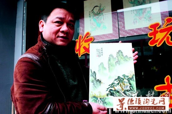 “珠山八友”是晚清民國年間聚集在景德鎮(zhèn)創(chuàng)作瓷板畫的一群藝人,以瓷入畫,以胎為紙,創(chuàng)作了濃艷俏麗的新粉彩。近年來,他們的作品受到追捧,在拍賣會(huì)上屢屢拍出高價(jià),也引發(fā)了市場(chǎng)上贗品充斥。昨日,“珠山八友”之一汪野亭的山水瓷板畫代表作品在漢現(xiàn)身,它是資深瓷器收藏家李險(xiǎn)峰花大價(jià)錢從外地藏家手上買來的。