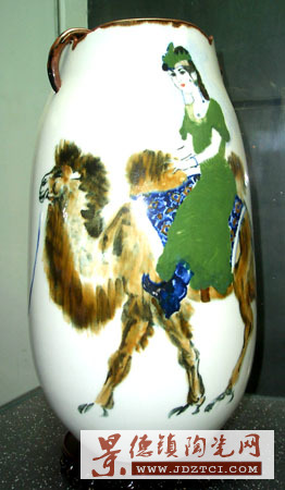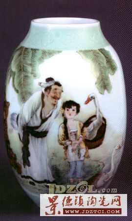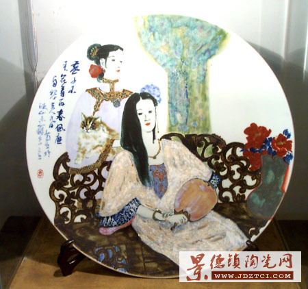 “李菊生陶瓷藝術(shù)館”就在“中華陶藝村”他家的別墅樓中,占據(jù)了兩層樓面、六個(gè)展室。此次共有51件藝術(shù)陶瓷作品展出,大部分是他首創(chuàng)的高溫顏色釉裝飾人物藝術(shù)瓷,也有青花、釉里紅綜合裝飾藝術(shù)瓷,器型是瓷瓶、瓷盤(pán)、瓷板,還有部分粉彩藝術(shù)瓷瓶等。
