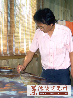 “中華陶藝村”顧名思義,是個(gè)不同尋常的瓷苑高地,薈萃了景德鎮(zhèn)數(shù)十位重量級(jí)陶瓷藝術(shù)家。這個(gè)民間社團(tuán)性的“村長(zhǎng)”大概非任命而是公推的。身為景市美術(shù)家協(xié)會(huì)副主席的實(shí)力派陶藝家龔循明,原本對(duì)現(xiàn)在泛濫貶值的各種頭銜不屑一顧,卻頂起了這無(wú)級(jí)別卻有份量的名頭。在他的工作室里,龔循明剛好完成了一幅大瓷板風(fēng)景畫,讓我眼睛一亮:構(gòu)圖獨(dú)特、意蘊(yùn)深遠(yuǎn),自不必說(shuō);光是畫面的造型語(yǔ)言和筆墨技法,就包含了東西方原本各異但被此畫融合得渾然一體的多種繪畫元素,使人有既熟悉又陌生的感覺(jué),一種全新的審美感覺(jué)。龔先生說(shuō):“明代大畫家石濤的‘筆墨當(dāng)隨時(shí)代’箴言,應(yīng)是每個(gè)有追求的藝術(shù)家的創(chuàng)作準(zhǔn)則。我不愿意從題材到技法都重復(fù)古人,真正的陶瓷藝術(shù)家應(yīng)該師古而不泥古,借鑒而不崇洋,每個(gè)時(shí)代都要努力超越和創(chuàng)新。”他還說(shuō),10多年來(lái),一直在努力探索陶瓷山水畫的新路子。比如,這幅山水畫中既有線條、皸法等傳統(tǒng)筆墨,也有西方油畫的色塊技法……