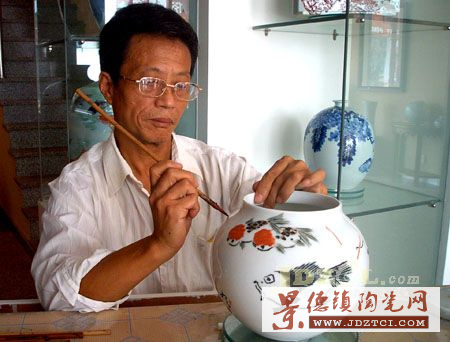 多年來(lái),他不僅常出席全國(guó)各類(lèi)文史哲美學(xué)術(shù)研討會(huì),發(fā)表陶瓷古彩方面的學(xué)術(shù)論文、及其多年來(lái)為段茂發(fā)古彩藝術(shù)系統(tǒng)全面整理的研究成果,自己也在古彩方面努力創(chuàng)作探索不已。從他展示的作品圖片集中,筆者見(jiàn)到他給日本某名人創(chuàng)作的幾幅古彩作品,給人耳目一新的感覺(jué)——畫(huà)面的色彩濃艷鮮明,線條稚拙剛直硬朗,絕對(duì)是正宗古彩的色彩和技法;但畫(huà)面的內(nèi)容不是中國(guó)的傳統(tǒng)題材,布局構(gòu)圖又并非以簡(jiǎn)約概括一說(shuō)可以解釋?zhuān)坪醺蟋F(xiàn)代派前衛(wèi)藝術(shù)的抽象表現(xiàn)手法。寥寥幾筆線條和幾抹色彩,竟以中國(guó)傳統(tǒng)的古彩繪出了一幅頗有韻致的異國(guó)風(fēng)情畫(huà)。題材內(nèi)容且不論,其構(gòu)圖布局表現(xiàn)手法卻與傳統(tǒng)相去甚遠(yuǎn)。段先生說(shuō),這是為外國(guó)人畫(huà)的外國(guó)題材畫(huà),所以,從表現(xiàn)手法上也采用了外國(guó)現(xiàn)代藝術(shù)的形式?雌饋(lái),就有點(diǎn)象另類(lèi)的古彩藝術(shù)了,給人一種新感覺(jué)。至于抽象表現(xiàn)藝術(shù),也并非外國(guó)專(zhuān)利,古窯出產(chǎn)的青花渣胎碗花紋等,就也抽象得很,而且是源于民間藝術(shù)的抽象手法。何況,傳統(tǒng)民間青花和古彩藝術(shù)本來(lái)就含有不少抽象元素,怎么不能借鑒引用各種本土和外來(lái)的藝術(shù)形式和理念,來(lái)豐富現(xiàn)代古彩陶藝呢。
