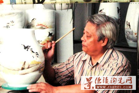 胡先生在“中國(guó)陶瓷城”中的個(gè)人工作室專(zhuān)門(mén)接待了筆者的采訪。他說(shuō),那件名為《醉》的作品創(chuàng)作有點(diǎn)神來(lái)之筆,也在情理之中——他偶然發(fā)現(xiàn)這件燒壞的瓷瓶白胎,本來(lái)是要報(bào)廢的,但他忽生靈感,在它上面繪出了“李白醉酒”的畫(huà)面,特殊器型與傳神畫(huà)面渾然一體,成為可遇不可求,也不可再?gòu)?fù)制的半天然半人為的陶瓷藝術(shù)絕品。但是,這件作品的誕生也是他潛心陶瓷藝術(shù)40多年,有著長(zhǎng)期探尋摸索因而也有了深厚的藝術(shù)積累,因而,才能把握機(jī)遇、心有靈犀一點(diǎn)通,孕育出了《醉》這件佳作。
