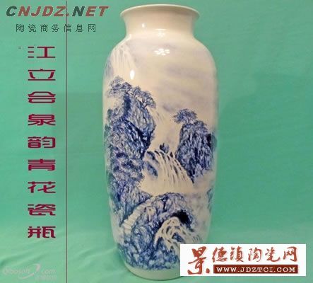 三十多年的陶瓷藝術(shù)創(chuàng)作生涯,不管是在什么崗位,他從未放棄自己對(duì)陶瓷藝術(shù)的探索與追求,陶瓷新彩、粉彩、青花……各種傳統(tǒng)陶瓷裝飾藝術(shù)他都如饑似渴地學(xué),令這些技藝在自己的手下妙筆生花,在眾多陶瓷裝飾手法中,他對(duì)寫意青花山水情有獨(dú)鐘愛得如癡如醉。所謂青花瓷,是運(yùn)用天然、鈷料在白泥上進(jìn)行繪畫裝飾,再罩以透明釉,然后在1300℃高溫下燒成,使色料充分滲透于坯釉之中,呈現(xiàn)青翠欲滴的藍(lán)色花紋。因而,陶瓷藝人都以能展現(xiàn)青花技藝為幸事,為追求它的精典而如癡如醉,江立會(huì)認(rèn)為青花不僅有著圖案瑰麗、紋飾繁多的美,有著著色單純、落筆素凈的靜,更因?yàn)樗兄鴱闹袊慈抉宀恋奶厥鈺炄镜难,用這些元素來描會(huì)出一個(gè)個(gè)山川奇秀、荷塘月色、花草相親、葉石相依的詩意世界美不勝收。正是如此,他通過多年來對(duì)青花瓷的耕耘,使他不斷吸取其藝術(shù)精髓,并在生活中探索著美的意境,生活的感悟讓他在陶瓷作品中隱現(xiàn)出對(duì)生活的激情及對(duì)人生的感知,使他的藝術(shù)更好地表現(xiàn)出高雅的情趣和創(chuàng)新的理念。他深知藝術(shù)的道路是漫長的,決非一朝一夕就能出成績,因此,要耐得住寂寞,靜得下心來,天天做同一件事是枯燥的,三十多年的創(chuàng)作經(jīng)驗(yàn)告訴他,搞藝術(shù)的人首先要喜歡藝術(shù),其次要勤奮,最主要的還是要有悟性,而悟性又離不開自身的閱歷、知識(shí)與修養(yǎng)。因此,無任是星期天、節(jié)假日,對(duì)他而言,沒有這個(gè)概念,一門心思搞繪畫創(chuàng)作,他的癡迷可用魯迅先生的一句話來描述“躲進(jìn)小樓成一統(tǒng),管他冬夏與春秋”,他積極創(chuàng)辦自己的陶瓷藝術(shù)工作室,創(chuàng)作出一件件陶瓷藝術(shù)精品,將自己心中的美好理想變?yōu)楝F(xiàn)實(shí),他一步步登上藝術(shù)創(chuàng)作的新高,青花釉里紅《雄鷹展翅》200件作品在全國工藝品、旅游紀(jì)念品交易會(huì)上獲得銀獎(jiǎng)。粉彩瓷板畫《山鄉(xiāng)春來早》獲得“海絲杯”美術(shù)陶瓷作品展金獎(jiǎng)。粉彩《獅》由北京美術(shù)館展出并收藏。