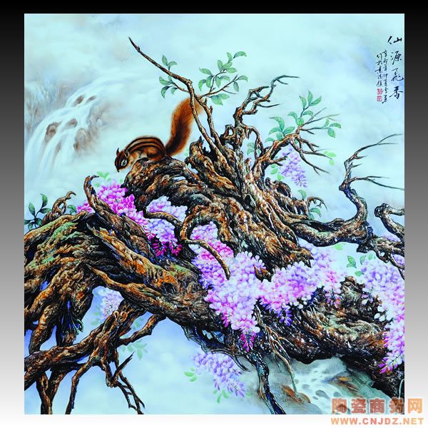 比如徐雪勇。在他那棱角分明的臉上有著秋的冷峻又有著秋的飄逸。那份氣定神閑、不疾不徐的風(fēng)度,讓人很自然覺得他又像某種植物,比如他喜歡的樹根。內(nèi)斂、含蓄、深沉。他師古而又不泥古,將大自然的根雕藝術(shù)運(yùn)用到陶瓷繪畫創(chuàng)作中,營造出一份自然真趣、古樸大氣的意境。