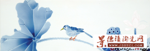 釉中青花在畫的時候比較容易控制,而且燒制起來成功率較高,燒成后基本上和畫的效果差不多,變化不大,缺少驚喜的感覺。釉下的青花作品則不然,錢進軍特別喜歡釉下作畫,直接在瓷坯上描繪。受齊白石影響,錢進軍在青花分水中加入工筆的畫法,將大寫意和工筆相結(jié)合!端叵恪返恼w構(gòu)圖中荷葉用了寫意的手法,湊近一看,一只工筆小鳥在荷塘里回頭張望,粗細有致!短煜闱迤G》里的工筆蝴蝶也是活靈活現(xiàn)。