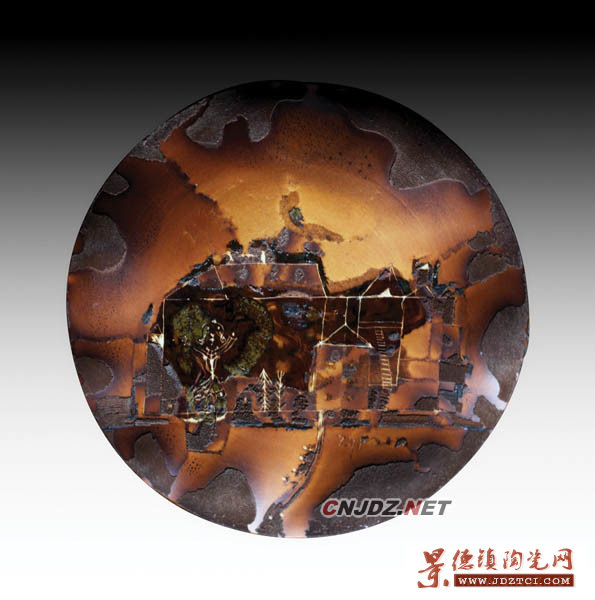 2012年,所有的耕耘,終于換來了收獲,在安徽省美術(shù)家協(xié)會(huì)和安徽省陶藝委舉辦的現(xiàn)代陶藝展上,朱墨的兩幅陶藝作品,高溫顏色釉瓷盤《黑鐵時(shí)代》,以幾乎天成的窯變效果,呈現(xiàn)出奇異的色彩和造型,來自中國陶藝委的評(píng)委白明、左正堯十分欣賞,評(píng)被為金獎(jiǎng)作品。