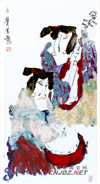 走進老魏的工作室,就不由自主地被他的“唐女”所吸引,絢麗的顏色釉把唐女的華貴,驕傲襯托的淋漓盡致,夸張大膽的線條把唐女的婀娜的身形勾勒的恰到好處,一顰一笑的表情,似看非看的眼神,無不把觀者引入了千年之前的大唐盛世,仿佛感受到眼前的瓷板畫,不再是一件凝固的作品,而是一個時空的入口,穿越過去,回望現(xiàn)在,驕傲已從千年開始了……