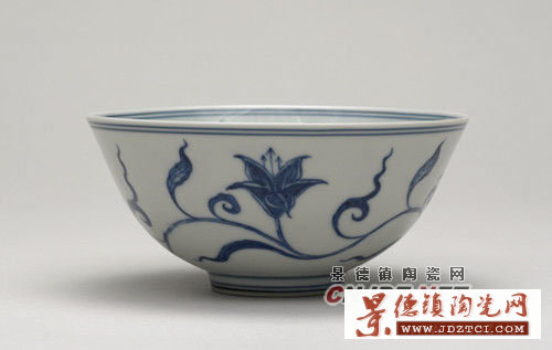 以精致純凈、細(xì)膩典雅聞名的成化官窯瓷器,是歷代收藏家們趨之若鶩的收藏珍品,因為傳世下來的成化官窯瓷器希若晨星,難得一見。大維德爵士藏有7件這種著名的宮碗。畫面以大幅留白為特征,造型端莊典雅,發(fā)色清新宜人,繪筆細(xì)膩生動,白釉潤如羊脂,胎體雪白無瑕,碗內(nèi)外畫一匝纏枝花卉,顯得靈轉(zhuǎn)曼妙,不愧為僅次于成化斗彩雞缸杯的名品。