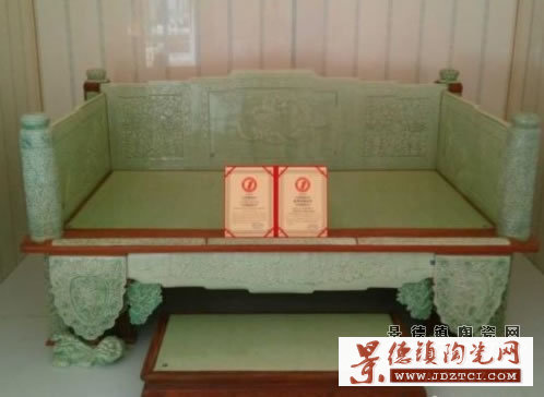 據(jù)了解,該陶瓷大床由大埔縣光德鎮(zhèn)源峰陶瓷家具廠負責人詹永源投資600余萬元制作,長218厘米、寬133厘米、高113厘米,從2010年開始至2013年3月耗時3年才完成。該陶瓷大床采用當?shù)馗邘X土高溫燒制而成,其不僅色釉圓滑、毫無劃痕,而且手工雕刻有栩栩如生的花鳥蟲魚等美麗圖案,讓人嘆為觀止。