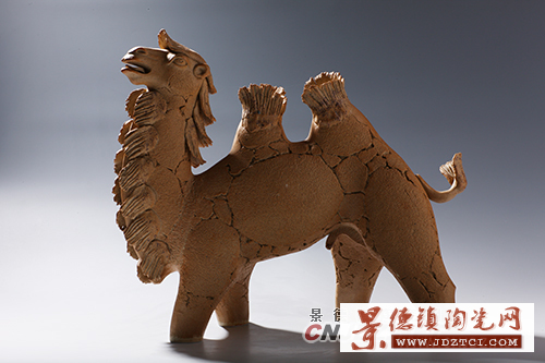 為了進(jìn)一步發(fā)掘缺陷肌理美在陶藝創(chuàng)作中的應(yīng)用,周國楨還一發(fā)不可收拾地投入到陶瓷材料的創(chuàng)新、陶藝新方法的挖掘與缺陷肌理美的產(chǎn)生之關(guān)系的探索與研究中。從一定意義上可以說,缺陷肌理美的偶發(fā)和自覺追求,成了周國楨發(fā)現(xiàn)匣缽?fù)恋却仲|(zhì)材料奇特藝術(shù)表現(xiàn)力的強(qiáng)大動力,也成了周國楨從民間挖掘和應(yīng)用泥條盤筑法、泥餅卷筒法等古老技法進(jìn)行藝術(shù)創(chuàng)作的強(qiáng)大動力。而陶瓷新材料和古老技法的成功發(fā)掘和應(yīng)用,又使周國楨缺陷肌理美的藝術(shù)追求乃至現(xiàn)代陶藝的創(chuàng)作日趨成熟和完善。而這正是周國楨之所以是周國楨的重要原因?梢院敛豢鋸埖卣f,古老技法、粗質(zhì)材料與缺陷肌理美等三者的完美結(jié)合與應(yīng)用,在中國乃至世界現(xiàn)代陶藝史上具有非常重大的學(xué)術(shù)價值。它使周國楨陶瓷藝術(shù)創(chuàng)作當(dāng)之無愧地處于“一覽眾山小”的至高學(xué)術(shù)地位。對此,周國楨“古風(fēng)時期”風(fēng)格的系列作品如《葉落歸根》(1985年)、《牛脾氣》(1985年)、《黃河》(1986年)、《老狐貍》(1988年)、《臥鹿》(1998年)等,“新表現(xiàn)時期”風(fēng)格的系列作品如《斑馬》(1988年)、《角馬》(1988年)、《老綿羊》(1990年)、《森林怨》(1998年)、《怒吼的非洲》(2000年)、《靜觀》(2000年)等,所呈現(xiàn)的令人過目難忘、震撼心靈的缺陷肌理美之藝術(shù)效果就是最好的明證。毋庸置疑,周國楨的努力與創(chuàng)新,使素來為人們所拋棄的陶瓷殘缺肌理獲得了新的審美意義和審美價值,對人類藝術(shù)史和人類審美史來說都具有重大學(xué)術(shù)意義。