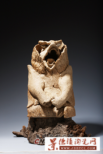 在努力探索陶瓷釉料新的藝術(shù)表現(xiàn)力的同時,周國楨一直沒有停止對陶瓷泥料的試驗(yàn)與探索。在他的陶藝大觀園里,有的作品是用瓷土創(chuàng)作的,有的作品是用陶土創(chuàng)作的,還有作品是將瓷土與陶土進(jìn)行不同比例的勾兌后創(chuàng)作的……值得大書特書的是周國楨首次成功讓粗質(zhì)材料成為陶瓷藝術(shù)創(chuàng)作的有用之材。1985年,周國楨在經(jīng)過多次失敗性試驗(yàn)之后,成功地將素被人們用來制作保護(hù)陶瓷燒成的匣缽或耐火磚、耐火板之用的“低賤之材質(zhì)”——匣缽?fù)烈?a href="http://m.qasw37.cn" target="_blank">陶藝創(chuàng)作中。結(jié)果使其陶藝作品頓時呈現(xiàn)出耐人尋味的原始、古拙、粗獷、純真之風(fēng)格,獲得了意想不到的藝術(shù)效果。以匣缽?fù)寥〈?xì)的瓷土,以及匣缽?fù)恋乃囆g(shù)表現(xiàn)力的成功發(fā)掘和應(yīng)用,使周國楨又一次完成了藝術(shù)“變法”,順利進(jìn)入到 “古風(fēng)時期”。