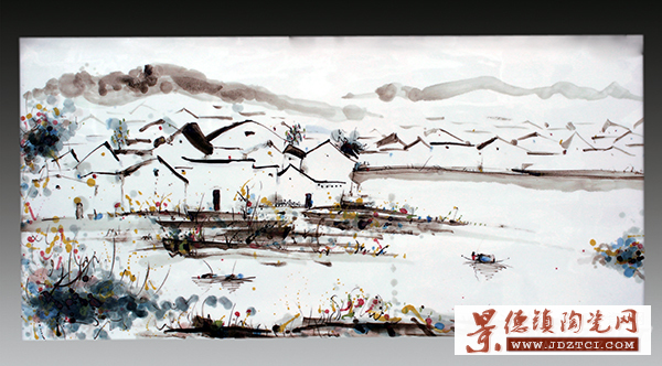 藝術是樹木,只能在土壤中汲取營養(yǎng),而王小霞的土壤在“故土”。如今,她得已如愿將自己童年時所見到的江南水鄉(xiāng)的質樸繪于瓷上,釉下五彩的古樸色調與艷麗的紅、黃、藍、綠等“色點”組合成王小霞畫作鮮明的藝術構成!端l(xiāng)》系列形簡意豐,畫面充滿詩意,用筆不講究工細,而注重神態(tài)的表現和作者神態(tài)的抒發(fā)以及點、線、面的結合與搭配。