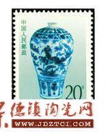 1991年10月11日,我國(guó)發(fā)行一套《景德鎮(zhèn)瓷器》特種郵票,其中第二枚圖案為“元青花追韓信圖梅瓶”。