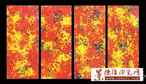 第一次在美院藝術(shù)陶瓷館看到朱振洪老師的作品《游春》時,布滿了整塊瓷板的高溫色釉肌理傳遞出一種視覺的魅力,這幅畫中創(chuàng)作者借助顏色釉材料本身來表現(xiàn)春之盎然氣息,自然中的生命力彰顯出一種自由伸展的奔放姿態(tài),而無論是繁茂的春樹還是裊裊娉娉的仕女在畫面中都得到了簡化的處理,不拘泥于具體的形態(tài)呈現(xiàn)。往后才發(fā)現(xiàn)這種表現(xiàn)手法幾乎涵蓋了他所有的作品,無一不流露出一種率性揮灑、一任自然的表現(xiàn)張力,漸形成了其追求本真、樸拙雄渾的藝術(shù)風(fēng)格。