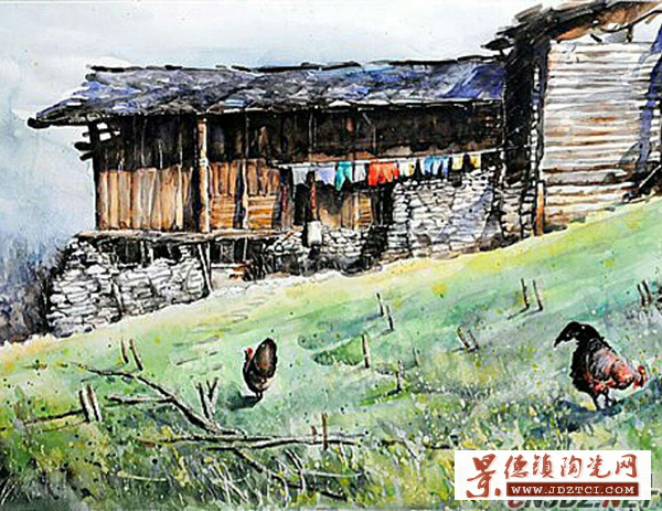 “我感覺隨著年齡與閱歷的增長,約到后面越有生活的樂趣。”在陶淵明故里長大的戶小平,心中也有一個(gè)桃花源的夢曉和“悠然見南山”的生活態(tài)度,所以他的作品里總是在不經(jīng)意間將禪與詩融入畫中,借物言志,表現(xiàn)他的思想感情和人生寓意,充滿了對(duì)大自然的愛好,對(duì)生活的熱情。從他的水彩畫作《失落的記憶》、《大宅門》和《鄉(xiāng)音》等作品中,就可以看出他在更高層次上師法造化,做到人與自然合二為一,不但回歸消融于自然懷抱,更甚于對(duì)自然的理解和感恩,畫出山川靈魂,與眾生共舞。