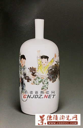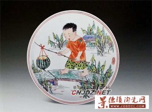 說起來,這里面有一個機(jī)緣。十997年,李磊穎身懷六甲,那時候她便提前回到了浙江老家待產(chǎn)。在老家呆著的那段時間,李磊穎也沒閑著,她每天悠閑地畫起了國畫,一個個可愛的童子形象在她筆底出現(xiàn)了,所有的對新生命的期待和母性的關(guān)愛都傾注在了她的筆端,慢慢地積累了一百多張國畫。后來回景德鎮(zhèn)后,這批在老家畫的嬰戲題材的手稿也被帶了回來,從此,帶滿滿真情的李磊穎開啟了她的瓷上嬰戲題材的創(chuàng)作。