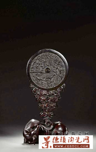 桃花流水人物紋吳牛喘月銅鏡(拍品編號:1214)起拍價¥650,000元;D:17cm;