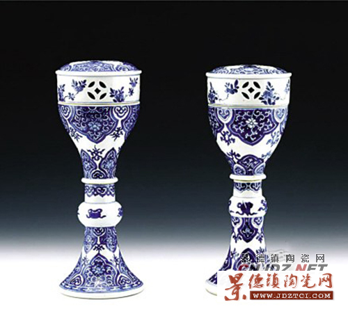 這對(duì)薰?fàn)t應(yīng)該是清康熙年間根據(jù)西方客戶的訂貨要求生產(chǎn)的,形制高挑秀美,與中國(guó)傳統(tǒng)式樣不同,屬康熙外銷瓷中并不多見的精品。器腹所飾多層如意花卉紋是康熙外銷瓷上的流行紋樣,時(shí)代特色鮮明。同時(shí),這件由四構(gòu)件組裝的、可以脫卸的器皿歷經(jīng)300年仍保持完好,也是難能可貴。