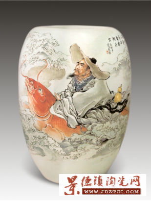 我對王老先生的訪談,是在他的藝術(shù)展廳兼工作室,還兼他的娛樂健身房,因為在他的畫室旁邊,就有一張非常正規(guī)的乒乓球桌。王老先生笑著告訴我,這樣他在繪畫之余,就可以活動筋骨打打乒乓球。第一次見面,王老先生完全不像我想象中的80多歲高齡,非常清朗干練,可謂精神矍鑠。那段時間,王老先生經(jīng)常往返于南昌與景德鎮(zhèn)之間,他以年輕人一樣的旺盛精力,正在創(chuàng)作兩幅巨型瓷板畫,預(yù)備第二年到南昌在江西美術(shù)館做展出。其中他所創(chuàng)作的一幅《南極星麻姑仙同往瑤池赴壽宴》,創(chuàng)下當年單幅最大粉彩瓷板畫的世界記錄。那天的見面,就是王老風塵仆仆從南昌趕回來接受我的采訪。