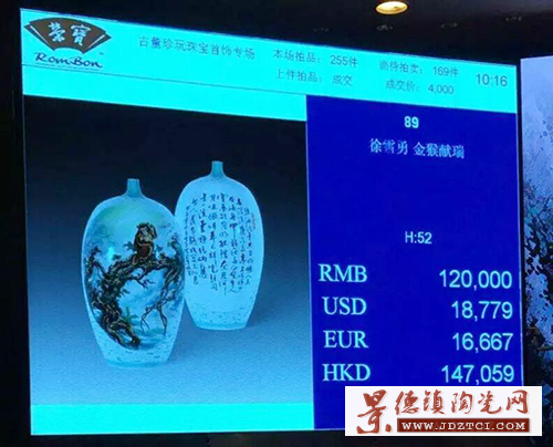 釉上根雕徐雪勇作品《金猴獻(xiàn)瑞》規(guī)格150件于8月31日在北京榮寶藝術(shù)品拍賣會上12萬元成交。
